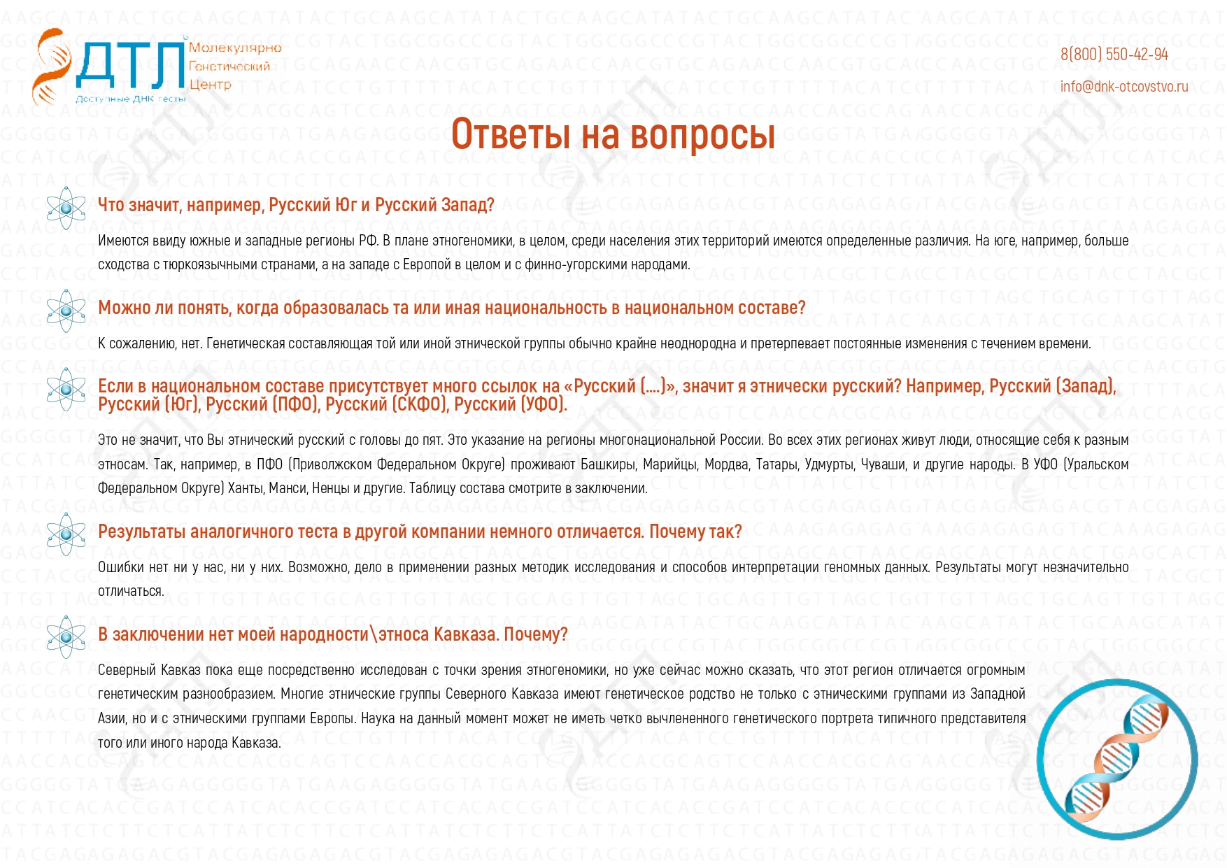 В нашем центре «ДТЛ» вы можете пройти ДНК анализ на национальность и узнать генеалогические корни. Возможно, среди ваших предков были евреи, карелы, осетины, молдаване, чеченцы, белорусы и многие другие.